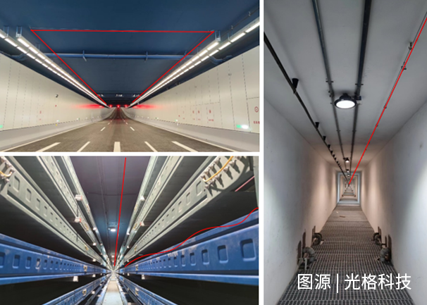 ▲光格感溫光纖隧道現(xiàn)場敷設(shè)圖(標(biāo)紅示意)