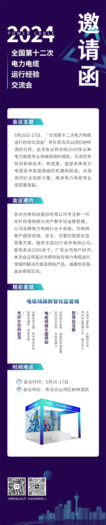 精彩光格 | 全國第十二次電力電纜運行經驗交流會即將在青島開幕,誠邀關注