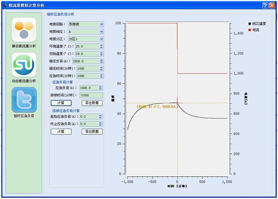 2. 穩(wěn)態(tài)載流量評估:根據(jù)電纜結(jié)構(gòu)及其運(yùn)行環(huán)境,計(jì)算出現(xiàn)場允許的最高載流量,為設(shè)計(jì)部門的電纜選型和調(diào)度部門調(diào)整電纜負(fù)荷提供參考數(shù)據(jù)。