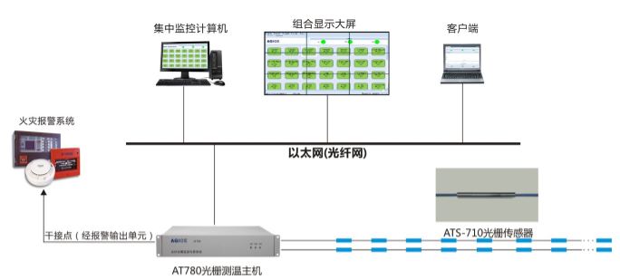 圖示:AT780準(zhǔn)分布式光纖光柵感溫火災(zāi)探測(cè)器工作系統(tǒng)圖