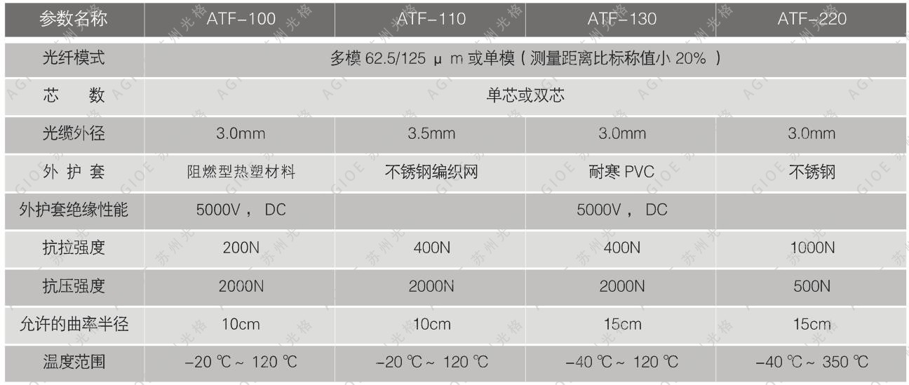 1、ATF-100產(chǎn)品于2008年首次完成設(shè)計(jì)、生產(chǎn)和銷(xiāo)售,ATF為Agioe Temperature Fiber的首字母縮寫(xiě),意為蘇州光格出品的感溫光纖。