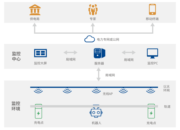 光格機(jī)器人智能巡檢系統(tǒng)由巡檢機(jī)器人本體、軌道系統(tǒng)、防火門控制系統(tǒng)、無線充電系統(tǒng)和通信系統(tǒng)組成,結(jié)合監(jiān)控管理平臺(tái),適用于電力隧道、綜合管廊、發(fā)電廠、配電房、大數(shù)據(jù)機(jī)房等無人值守環(huán)境下的監(jiān)控場景。