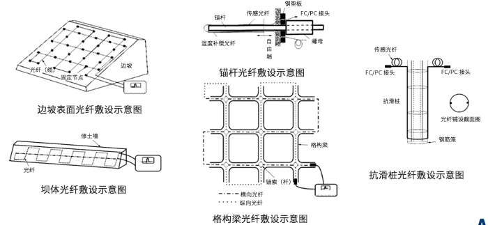 1.特殊的安裝工藝可保證應力監測光纜與壩體邊坡緊密結合,精確傳導形變,對形變、沉降等現象進行預警;