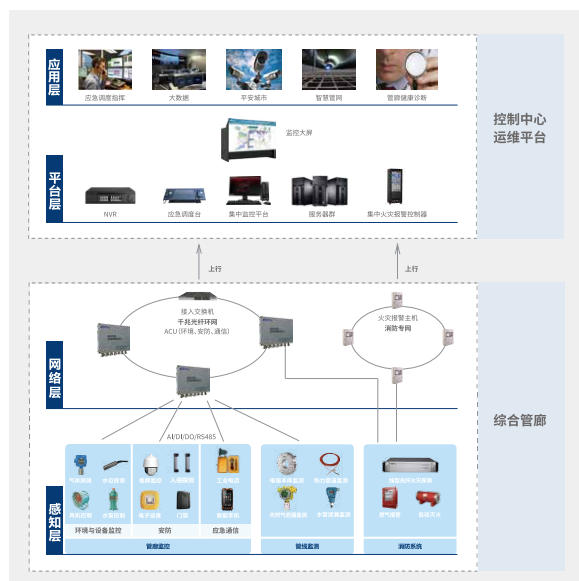 系統基于城市綜合管廊工程技術規范等標準開發,采用物聯網架構,模塊化設計,滿足分階段施工及技改的要求,可對綜合管廊內的設施、實時環境、出入口等進行全方位在線監測,實現綜合管廊監測、運維的智能化、自動化,保障管廊內環境、設備、運維人員安全。