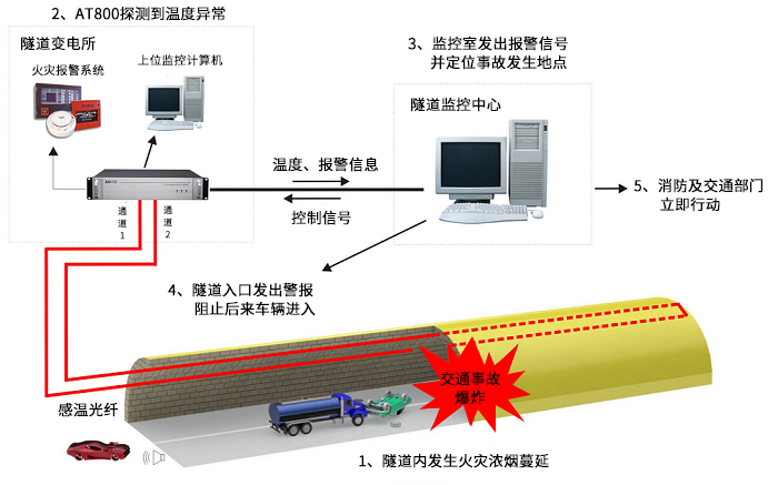4.隧道內發生火災時發出警報,阻止后來車輛繼續進入隧道;