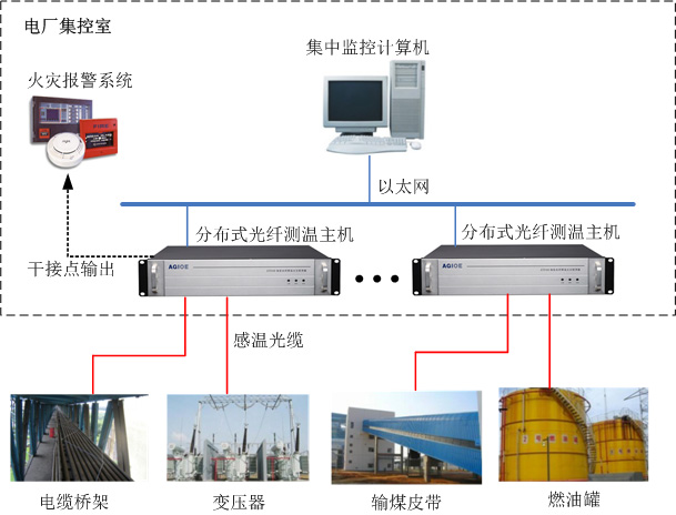 在電力發展的過程中,各地電廠作為整個經濟輸送經濟發展的最重要的電力資源的國家大型設施建設,其在每個城市的經濟發展過程中起到的作用是顯而易見的。電廠生產中所消耗的燃料無論是煤、油或天然氣都是易燃物,電廠中使用的電纜數量很大,而電纜的絕緣材料又易燃燒,一旦電纜著火往往擴大為火災事故。火災在發生之前一般都會有緩慢的溫度變化過程,如果能及時、準確的探測到溫度的異常變化,并快速采取措施,就能極大的降低火災發生的可能。